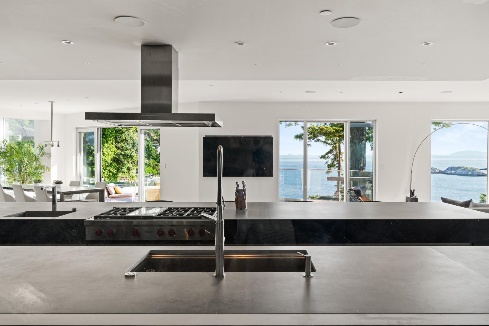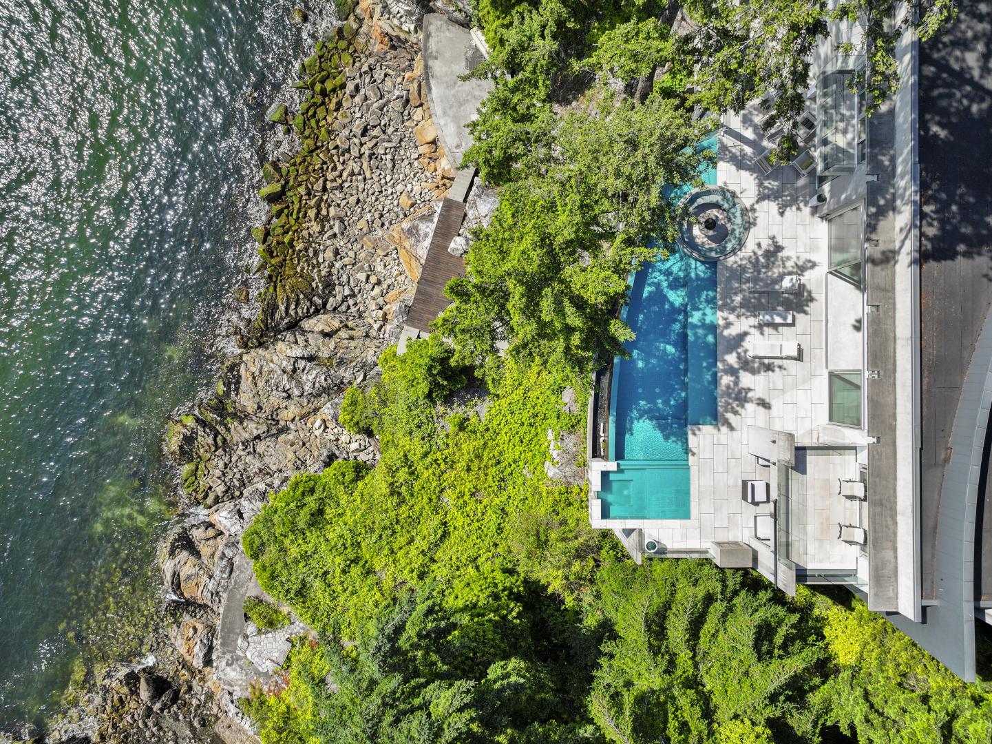 This STUNNING custom-designed concrete WATERFRONT home BY BRADNER HOMES boasts over 200 feet of shoreline - an ABSOLUTE MASTERPIECE. The OCEAN VIEWS are BREATHTAKING from the second you enter the front door with the most incredible privacy one could ever ask for. Perched on an almost 20,000 sq. ft. lot with incredible almost 9000 sq. ft. of living space with OCEAN VIEWS from everywhere - The most impressive infinity edge pool is a seamless sight as it flows PERFECTLY into the ocean backdrop! Owning a timeless concrete home on the water perched on a cliff such as this rarely is for sale!