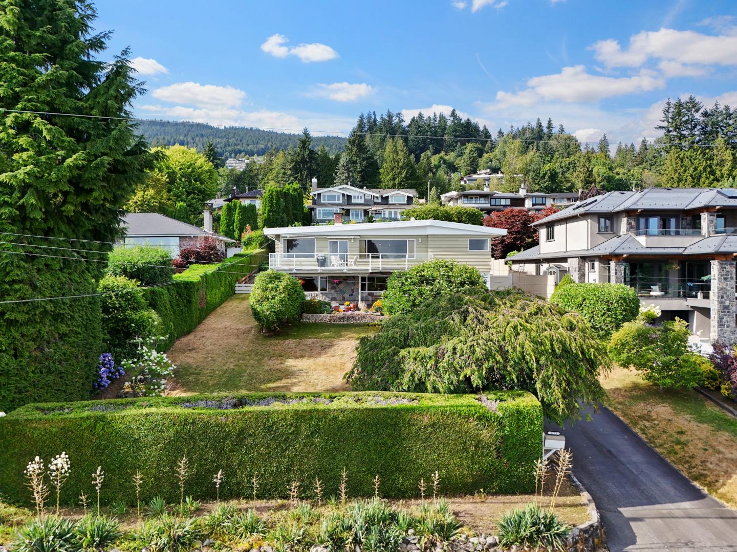 "WOW" VIEWS! First time ever on the market, this custom-built 2-level home sits on a SUN-DRENCHED, usable 14,000 sq ft lot with an impressive 80’ FRONTAGE in prime Queens, West Vancouver. Enjoy panoramic ocean, city, and mountain VIEWS from the main floor. Move-in ready with endless potential. The main level features a functional floor plan with 3 bedrooms and cozy fireplace, while the walk-out lower level — with separate entrance — offers excellent income suite potential or space for extended family. Live in it as-is, with AIR CONDITIONING, mature landscaping, and tons of flexibility to design and renovate at your schedule, or wait to build new and maximize the breathtaking views. Walk to top schools and Ambleside's shops and cafés. Just a 20 min drive to downtown Vancouver. This is the one! !
