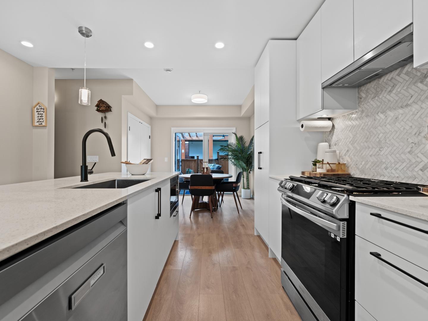 Tremendous TOWNHOUSE VALUE in Moodyville, North Vancouver! This airy END UNIT townhome at The Trails by Wall offers 3 bedrooms, 3 bathrooms, and 2 levels of thoughtfully designed living space with EV-ready parking and a full-size storage locker. EFFICIENT floor plan is enhanced by 3 outdoor spaces, including a spacious 175 sq. ft. patio off the kitchen/dining area with French doors, plus an additional balcony upstairs. The primary suite features a walk-in closet and ensuite, while the third bedroom works perfectly as a nursery or home office. On the main floor, the OVERSIZED DEN provides flexibility for an additional office, guest room, or reading nook. Comforts include radiant in-floor heating throughout, Samsung Smart Hub appliances in both the kitchen and laundry. BUYER’S BONUS: Pre-hung 65” Samsung Frame TV, matching Dolby Atmos Wireless Music Frame, and electric fireplace INCLUDED with home. One block to Moodyville Park, and steps to the Spirit Trail, schools, breweries, Shipyards, Lonsdale Quay and Seabus.