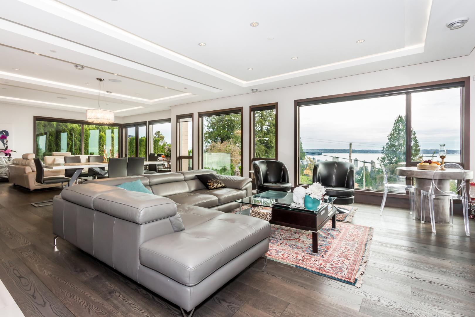 Situated on the 23rd block of Ottawa Street, this beautifully 2013 HOME showcases stunning panoramic ocean views from all levels. The main floor features an open-concept layout with a modern kitchen, wok kitchen, and seamless access to a private back patio. A detached guest suite offers privacy for visitors or extended family. Upstairs boasts three bedrooms, each with its own ensuite, plus a full laundry room. The lower level includes a bedroom, media room, and a legal one-bedroom suite with kitchen and laundry - all enjoying ocean views. Flat front yard with pool potential. Close to top schools, shops, and the community centre, this is an ideal family home in sought-after Dundarave.