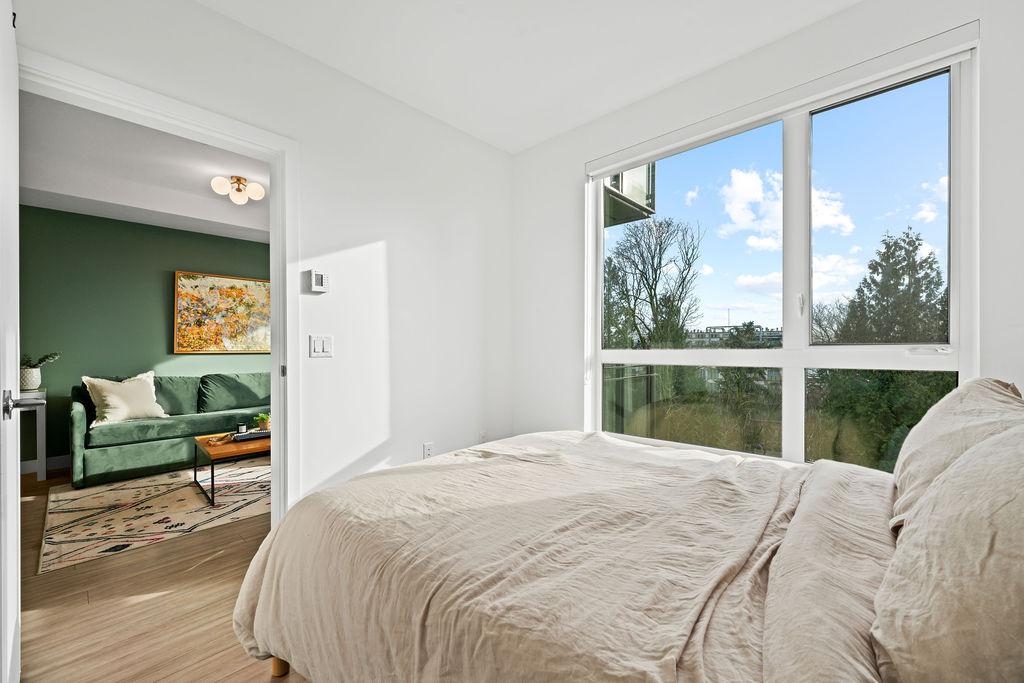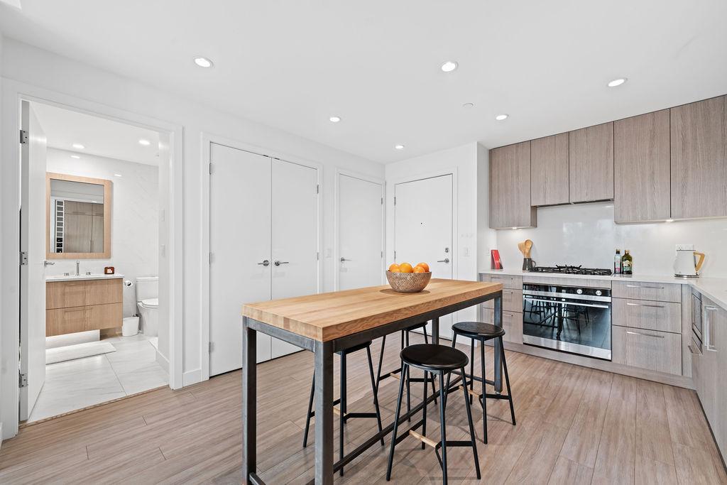"Green on Queensbury" in the heart of Moodyville, one of the North Shore’s fastest-growing communities, loved for its central location, close proximity to Lower Lonsdale and access to the outdoors! PARKSIDE FACING! This 1 bed + den offers one of the best layouts in the building, designed for both comfort and functionality. Featuring 9-foot ceilings, high-end appliances, and A/C, the space is BRIGHT & MODERN. Includes 1 EV parking spot! Overlooking Moodyville Park this home strikes the perfect balance of urban convenience and community-focused living! A LEED-certified, pet-friendly building with excellent amenities including a fitness centre, residents’ lounge, and guest suite - this is the one!