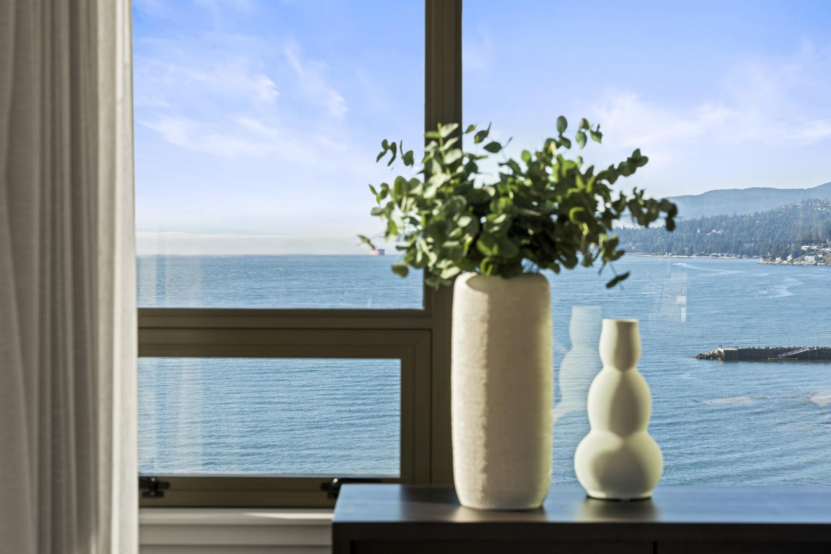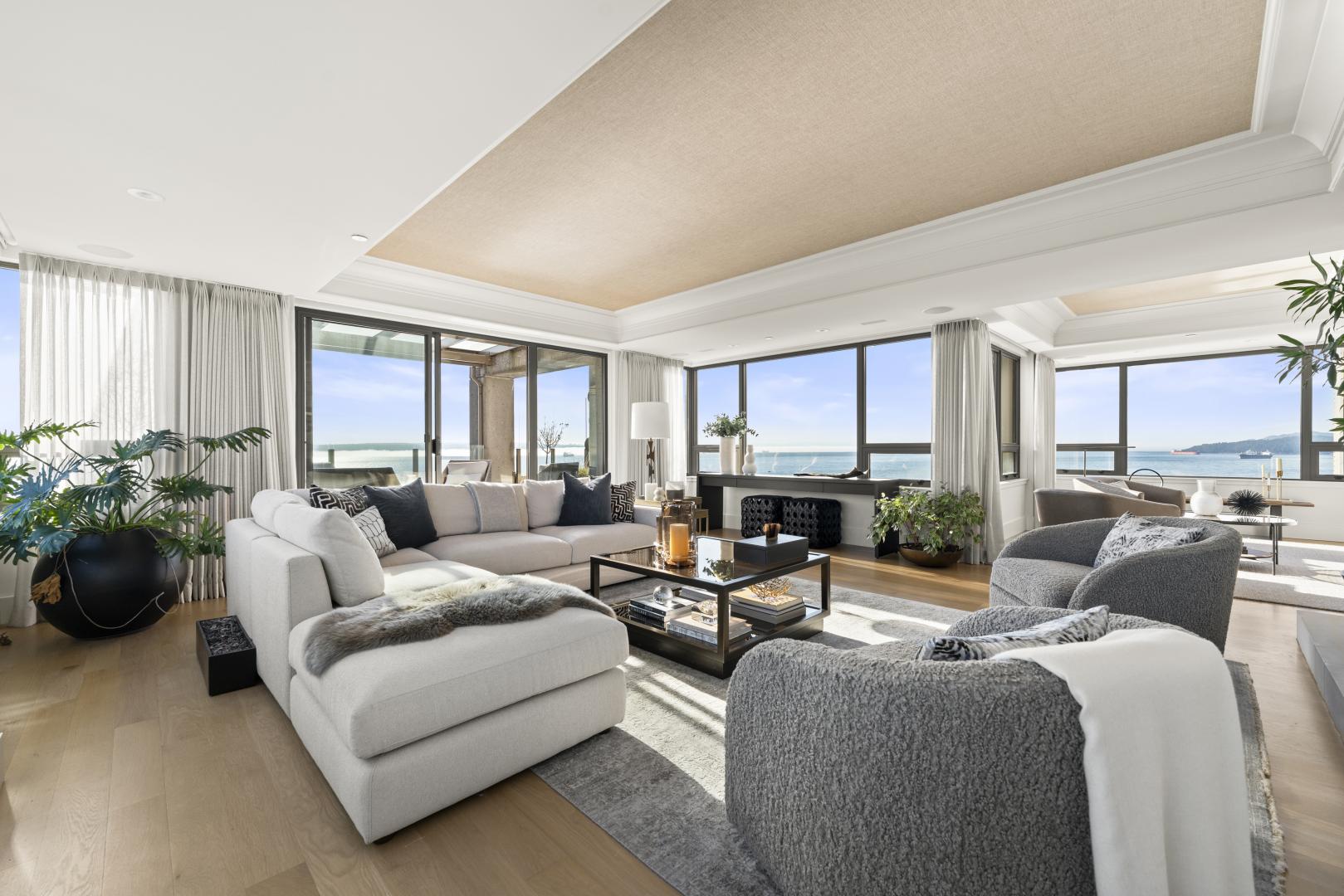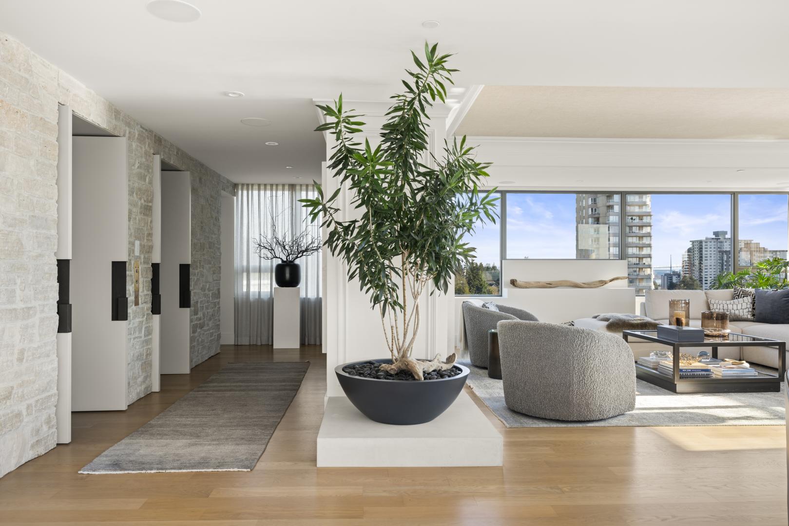ALL TIME IN WEST VANCOUVER. Designed, reconfigured and rebuilt by renowned designers Michelle & Linda Burger where luxury and privacy define a refined lifestyle — this over 3300 square foot one level living occupies the entire 11th floor with 2 private elevators entering your home in Les Terraces — a very highly sought-after West Van residence. MAGAZINE LIKE DESIGN, INCREDIBLE QUALITY offering THE MOST EPIC PANORAMIC VIEWS one can ever imagine of the ocean, city and mountains. The space perfectly flows from room to room which then flows nicely to your outdoor taking in the everything you have truly earned in life! Welcome to peace and tranquility — steps away from the vibrant restaurants and shops of Dundarave — WELCOME HOME